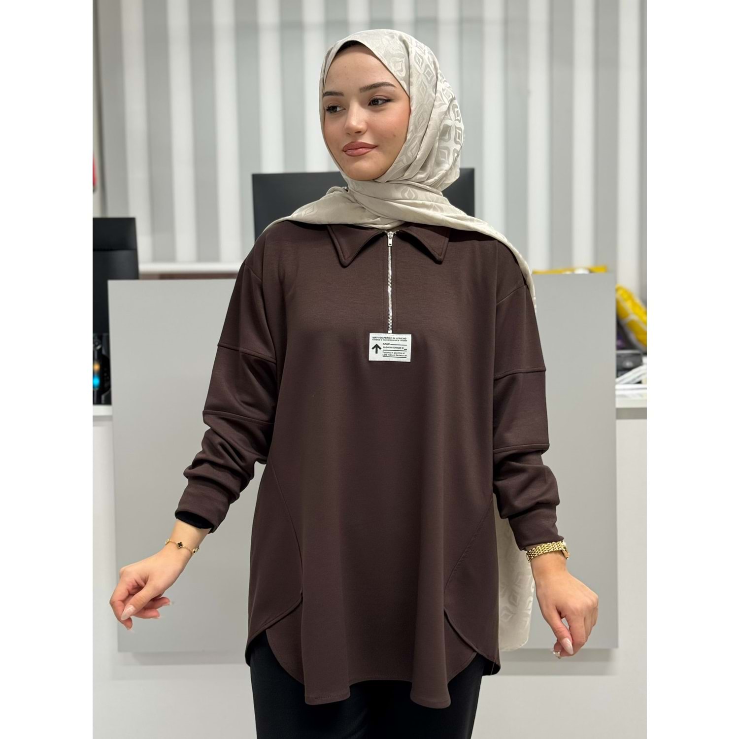 Oysho Yakalı Tunik 1038 - Kahve Rengi - L-XL