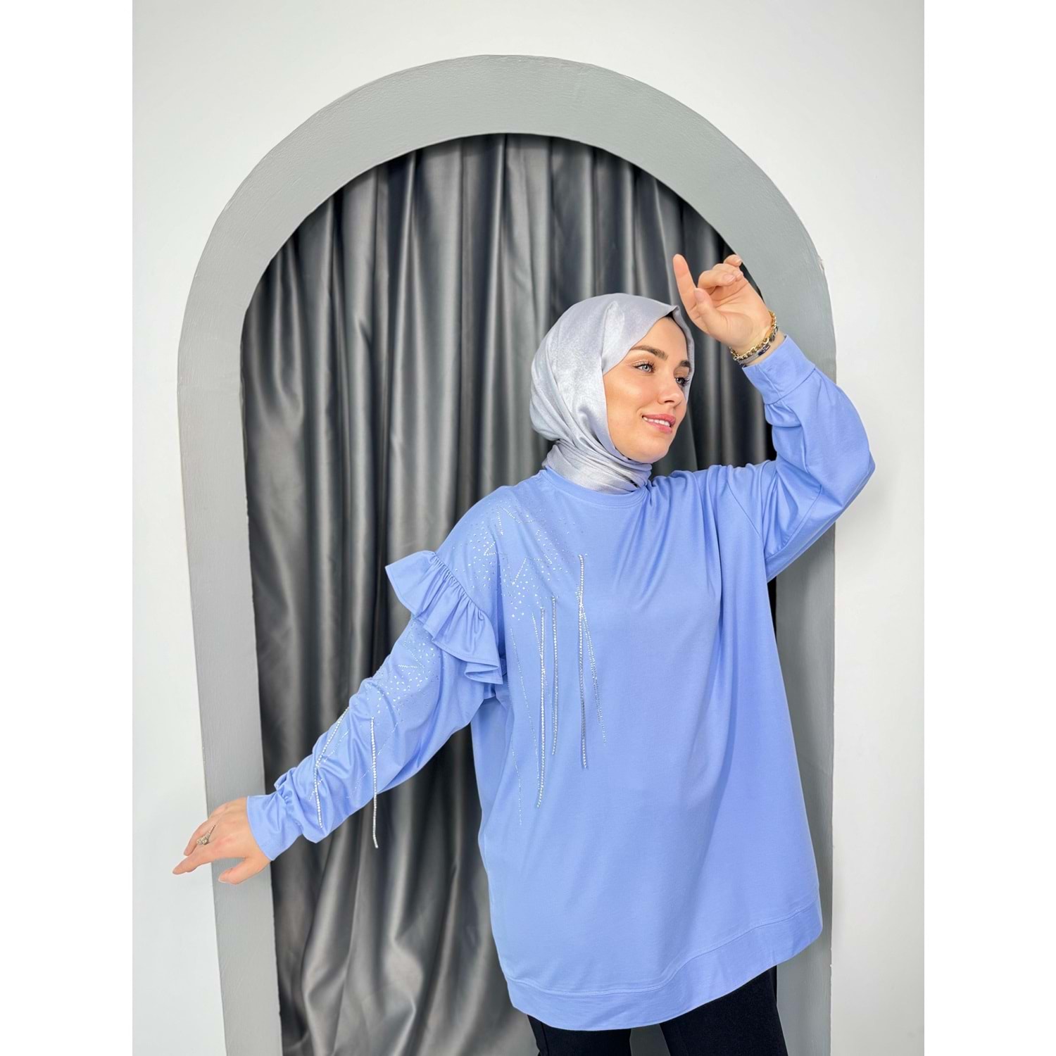 Taş Ve Fırfır Detaylı Tunik 15609 - Mavi - TEK BEDEN - AZRA04633-Mavi-TEK BEDEN