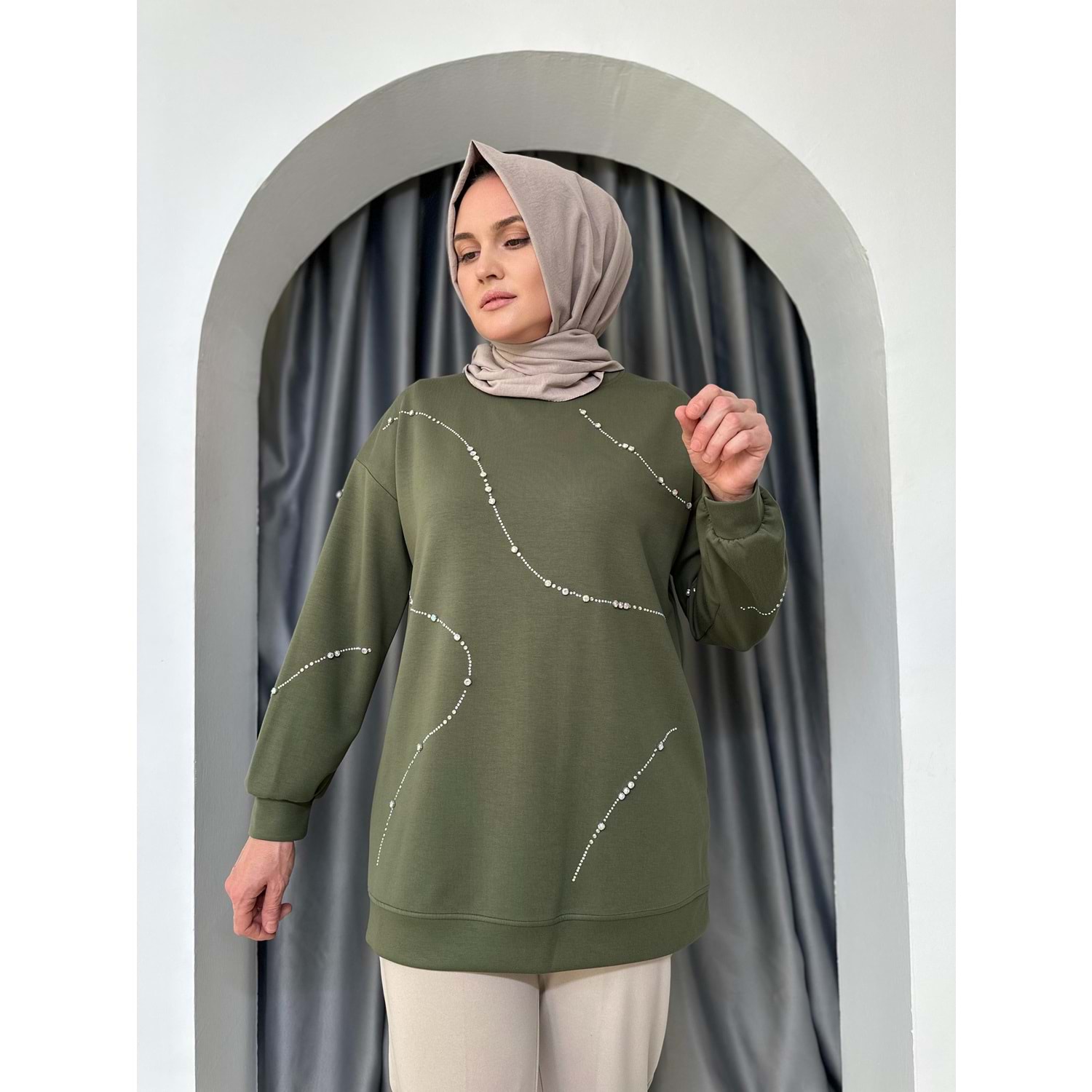 Taşlı Dalgıç Sweat 33607 - Haki - TEK BEDEN - AZRA05000-Haki-TEK BEDEN
