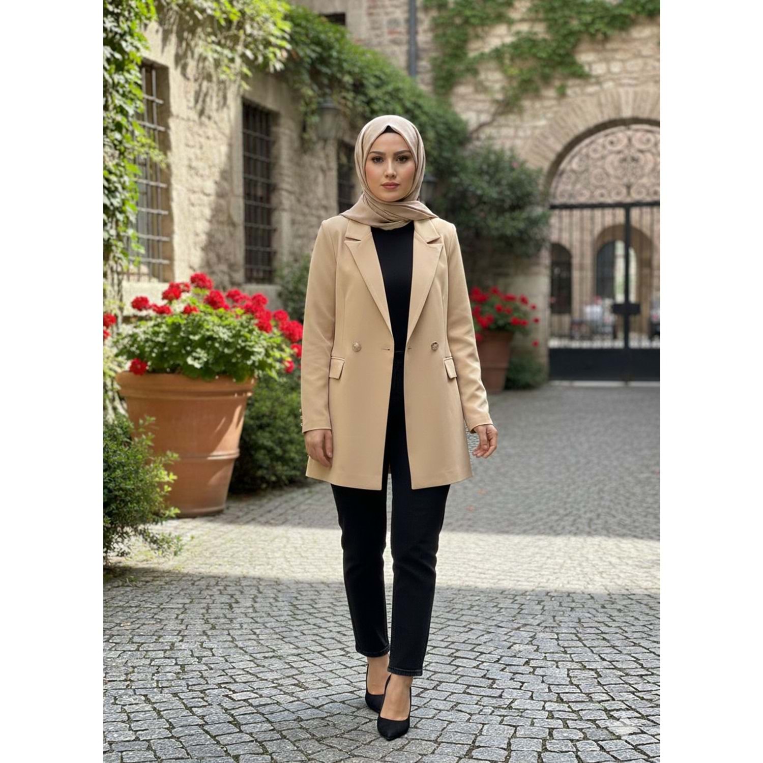 Dublle Kumaş Blazer Ceket - Bej - M