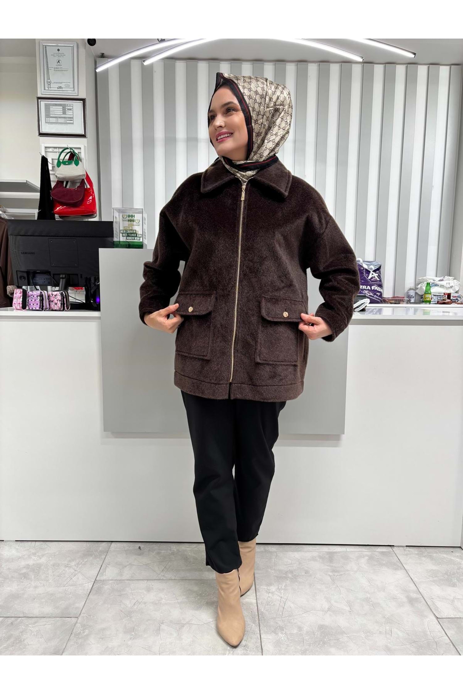 Torba Cepli Fermuarlı Ceket 35882 - Acı Kahve - TEK BEDEN