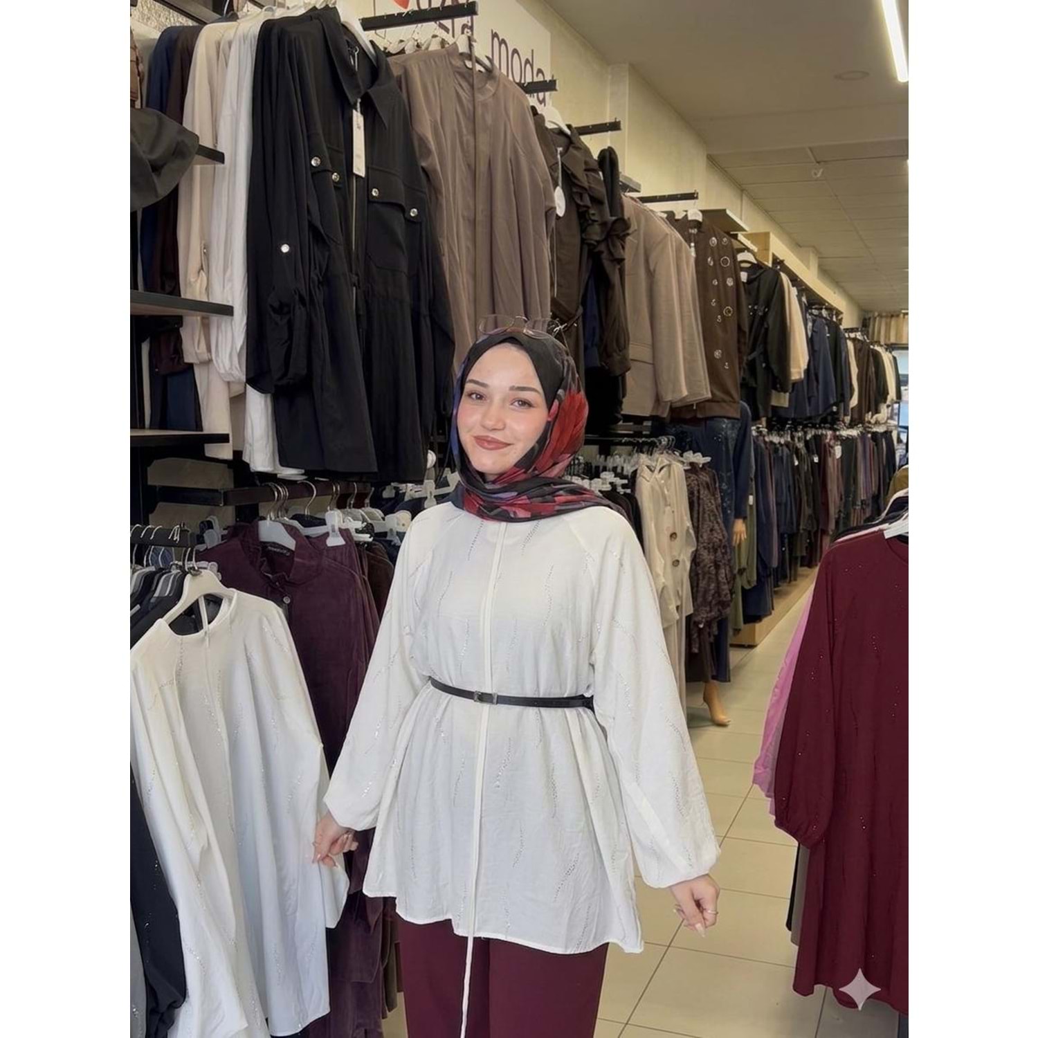 Balon Kol Fermuar Detaylı Kemerli Gömlek 26882 - Beyaz - M