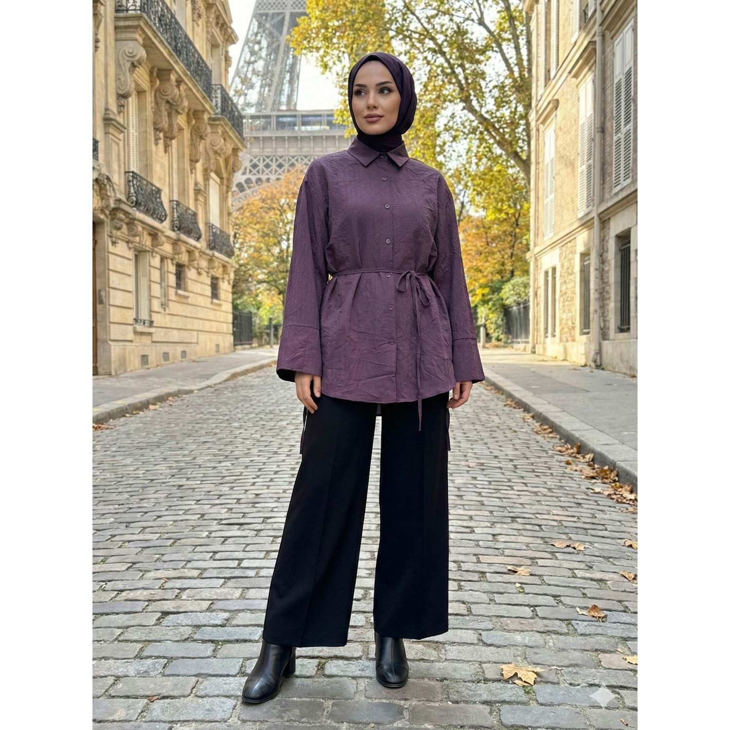 Belden Bağlamalı Modal Kumaş Gömlek 26742 - Mürdüm - L