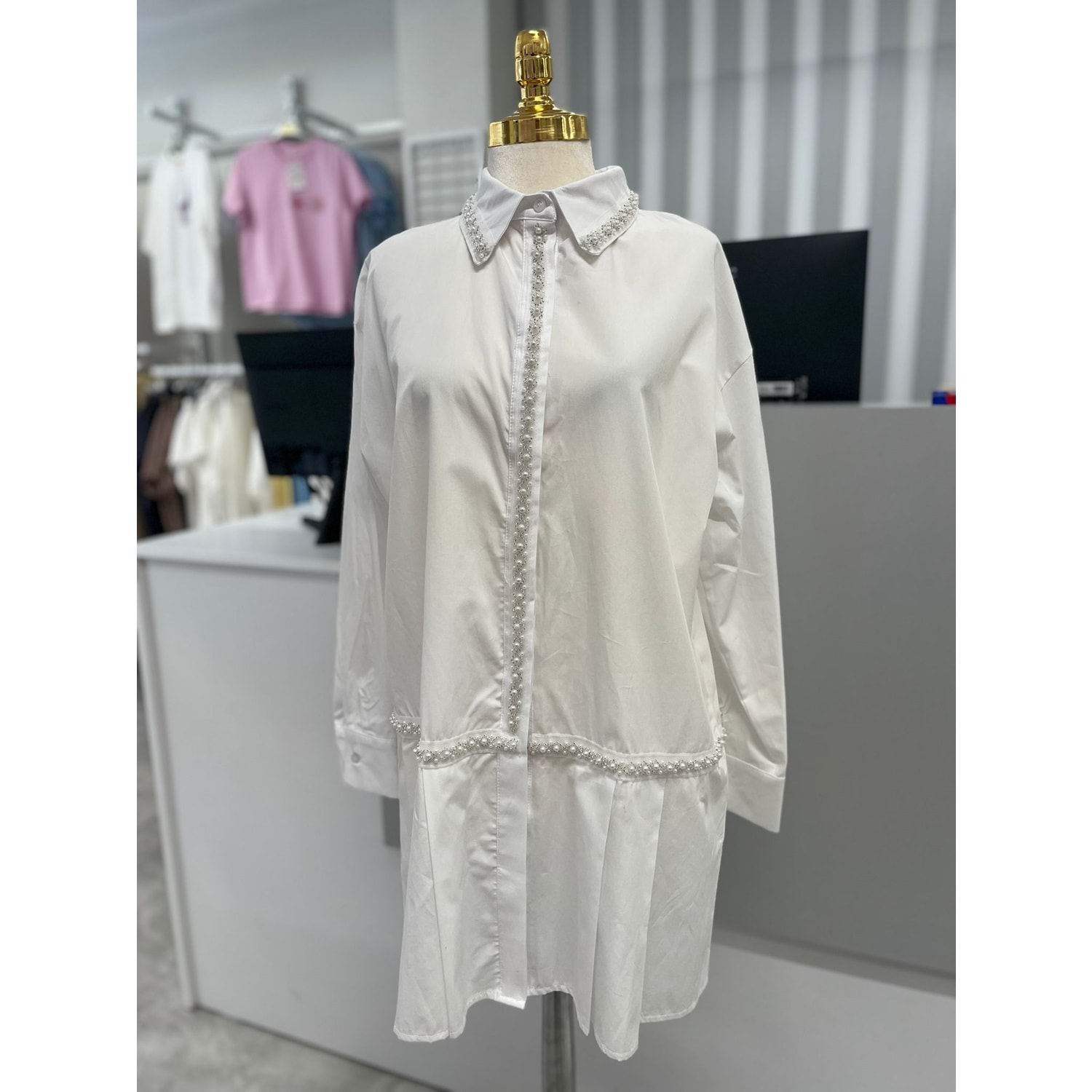 Boncuk Detaylı Gömlek 170177 - Beyaz - 36 - AZRA05721-47171