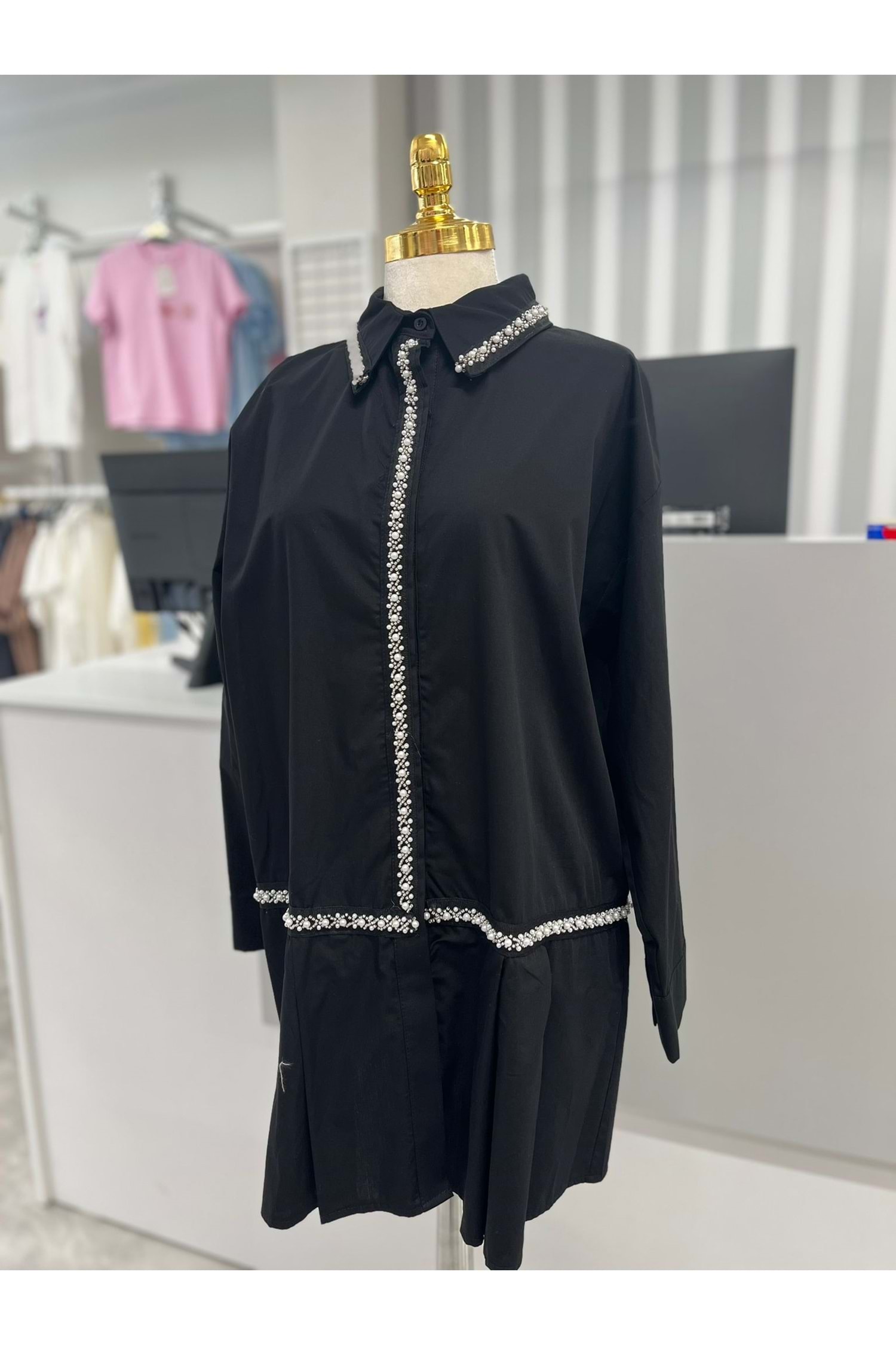 Boncuk Detaylı Gömlek 170177 - Siyah - 36 - AZRA05721-47183