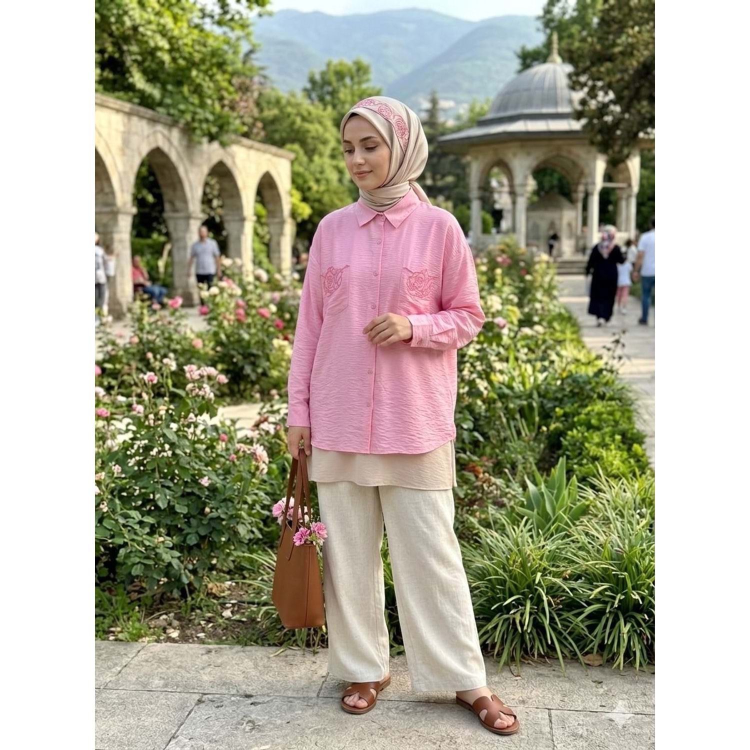 Cep Nakışlı Gömlek 26796 - Pembe - M