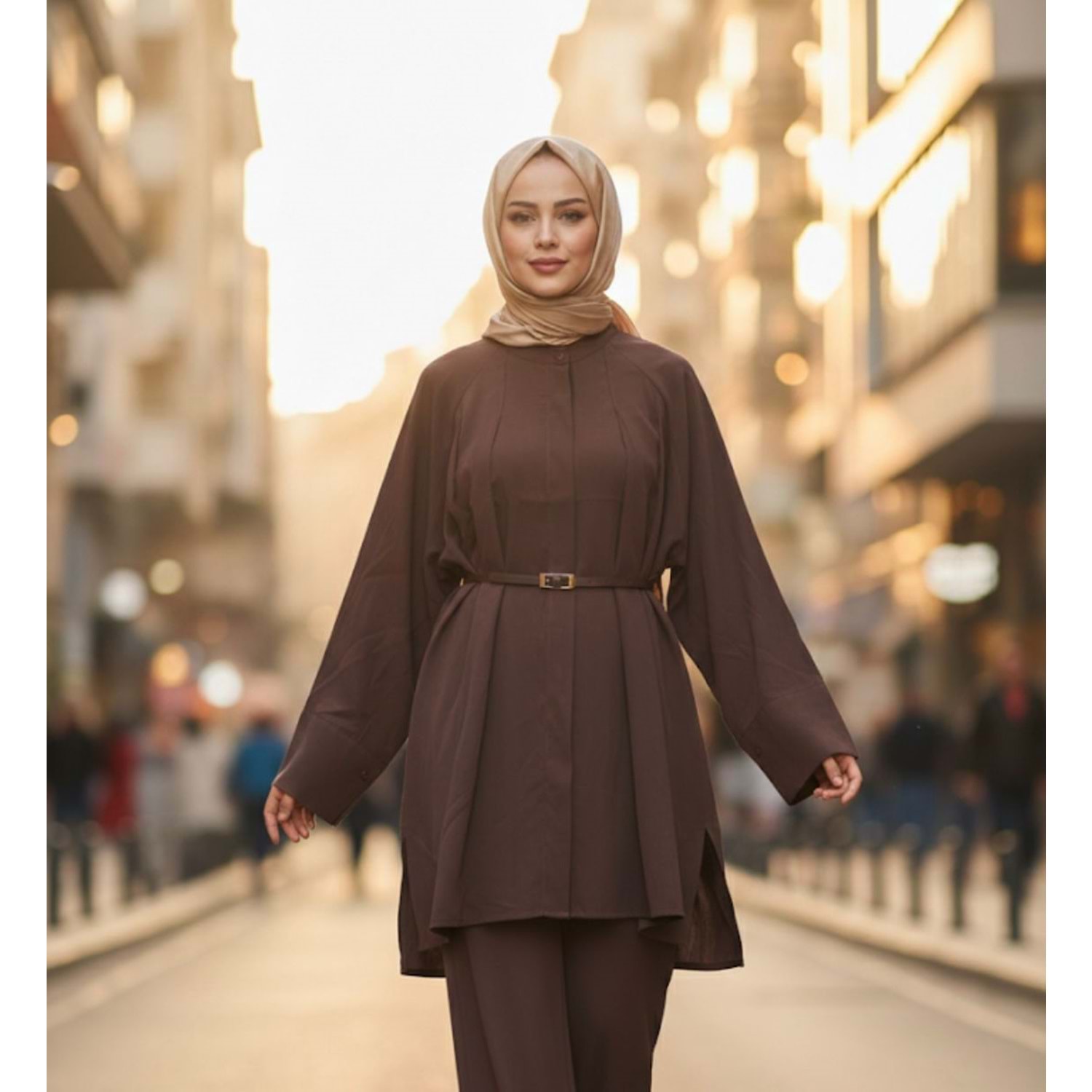 Kemerli Pileli Gömlek 26801 - Acı Kahve - L