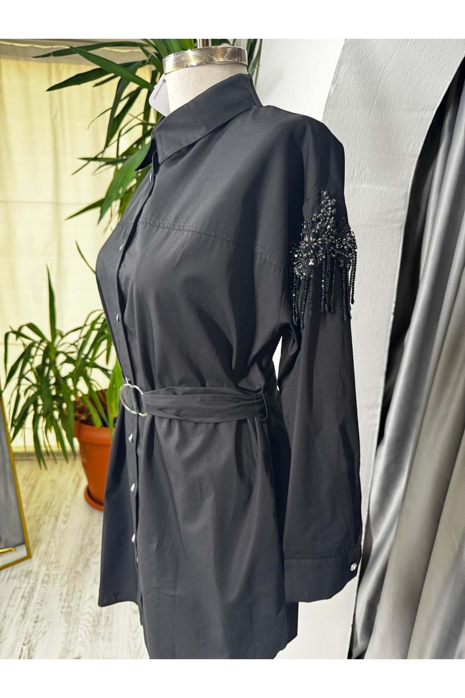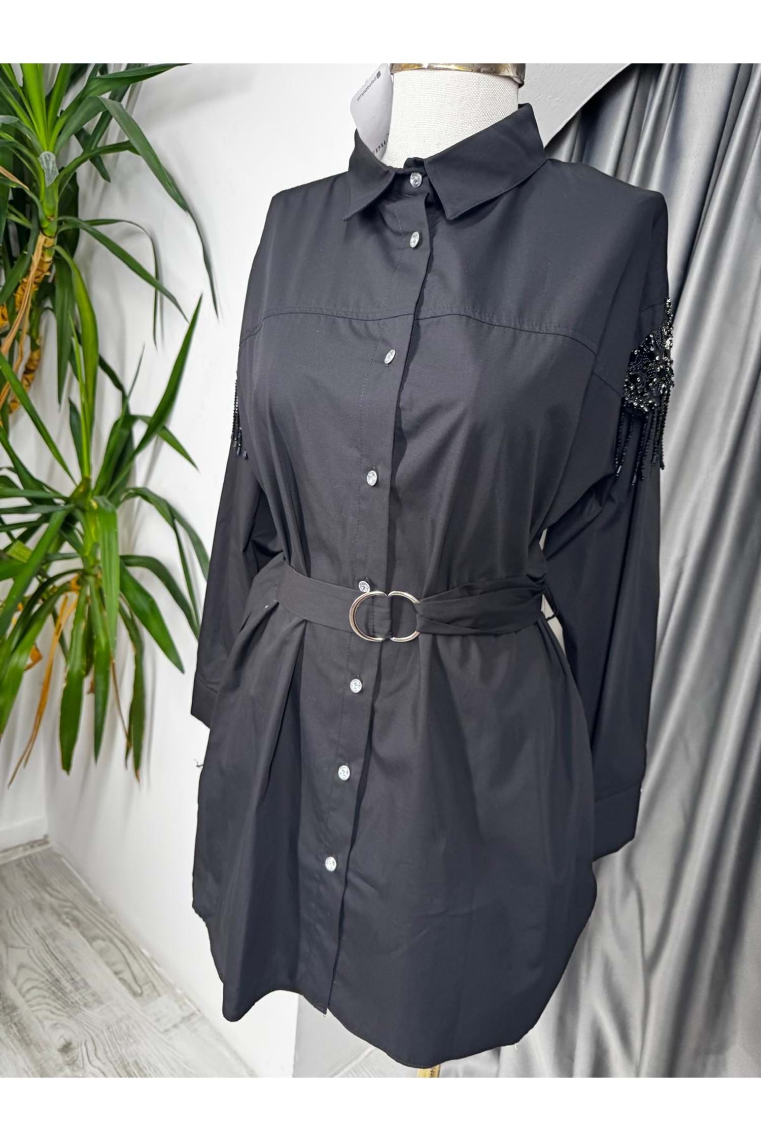 Kolları Taşlı Beli Kemerli Gömlek 170171 - Siyah - TEK BEDEN - AZRA05723-47209