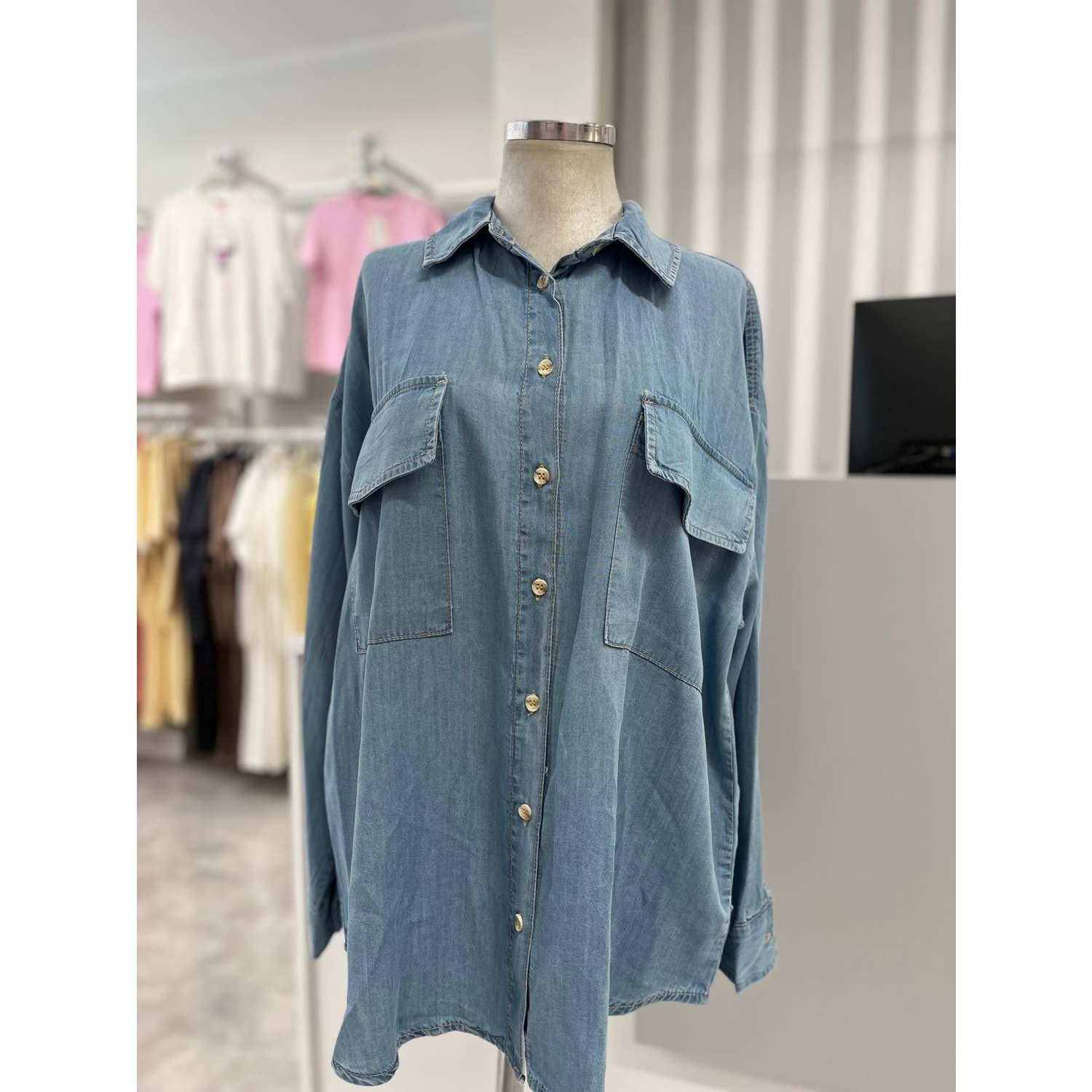 Oversize Tensel Gömlek - azra fashion - Mavi - TEK BEDEN