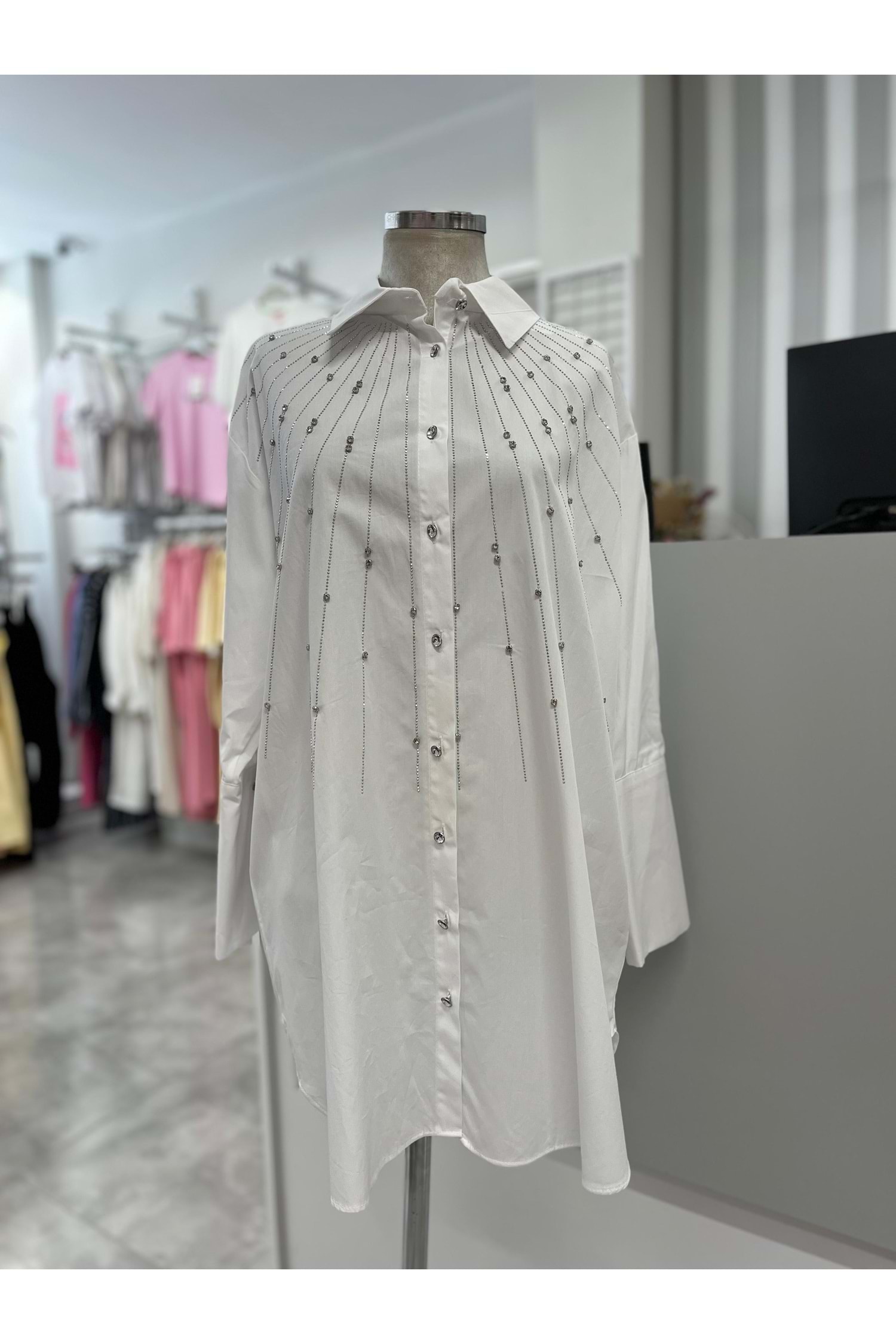 Serpme Pul Ve Boncuk Taşlı Gömlek 170178 - Ekru - TEK BEDEN - AZRA05878-48573