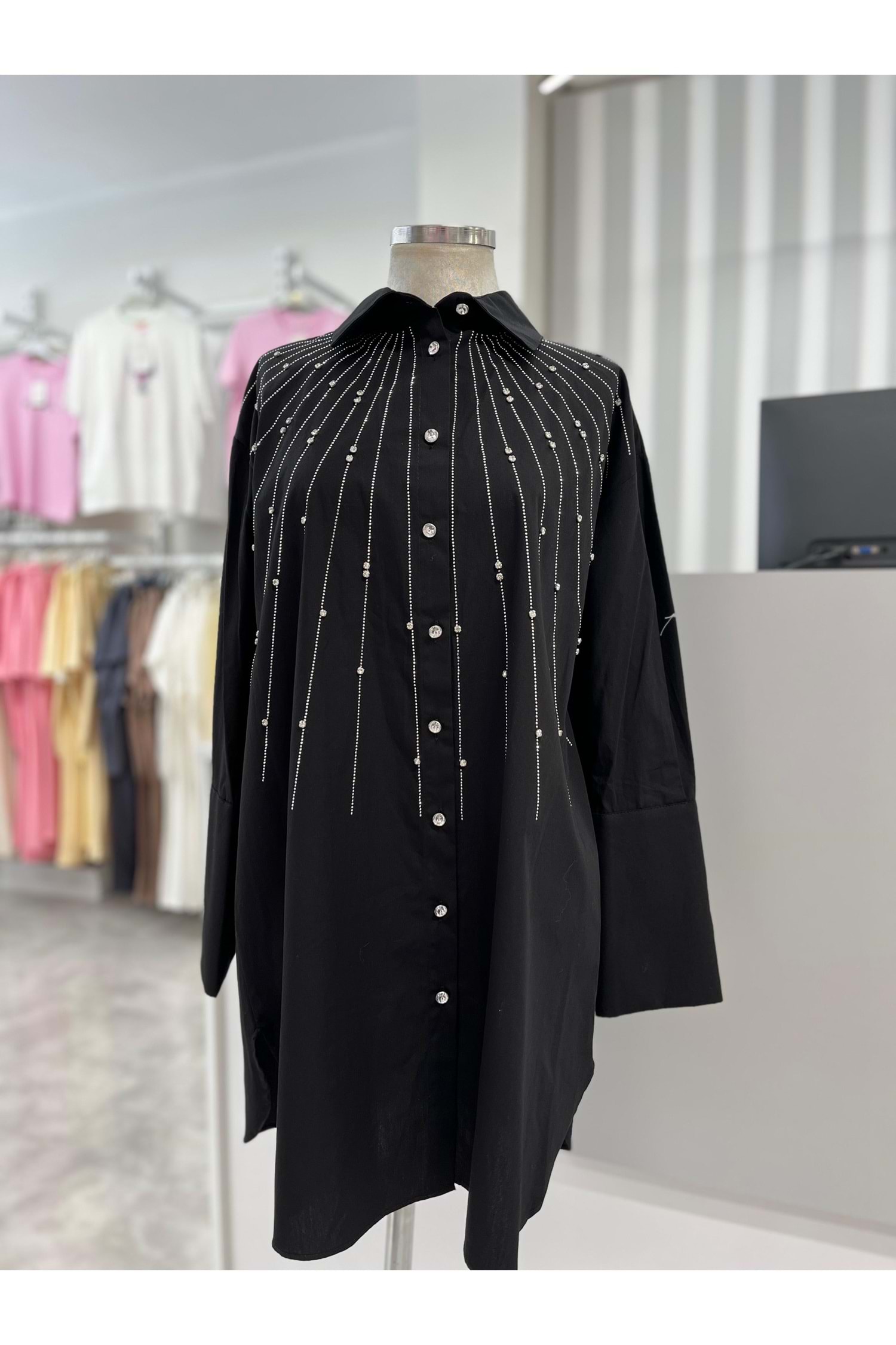 Serpme Pul Ve Boncuk Taşlı Gömlek 170178 - Siyah - TEK BEDEN - AZRA05878-48575