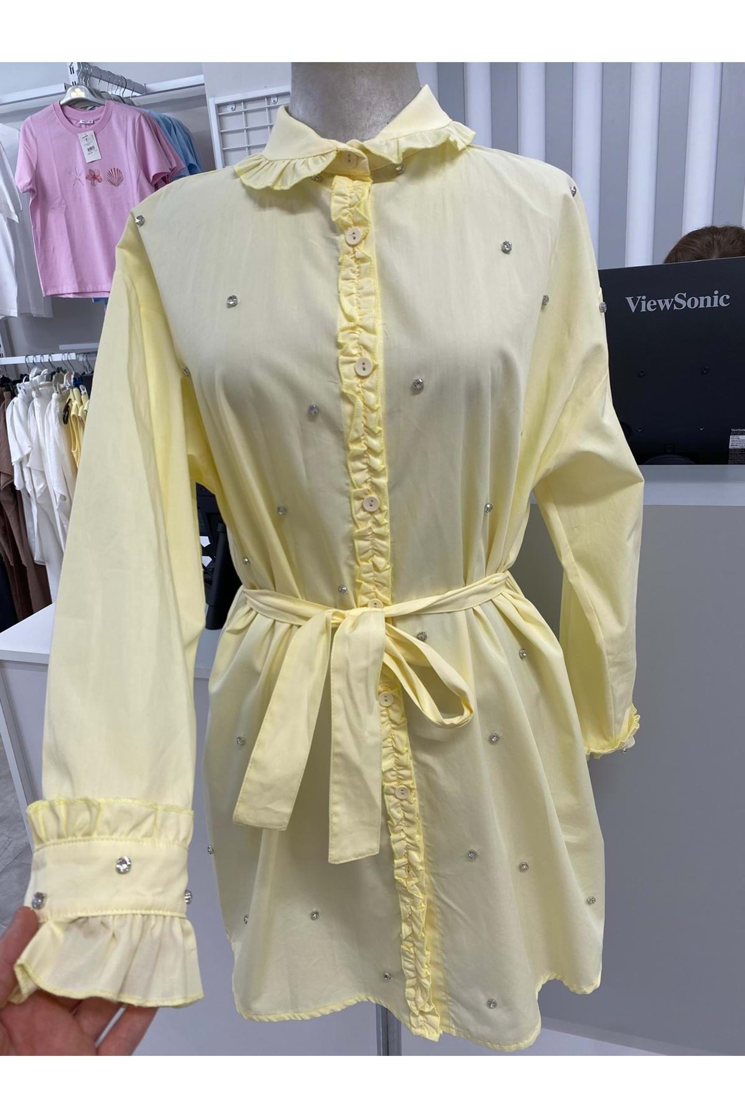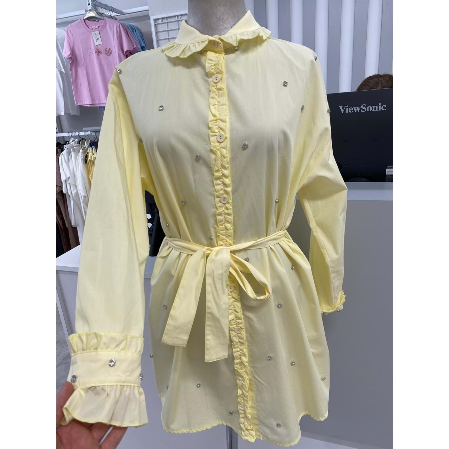 Taşlı Fırfırlı Gömlek 170176 - Sarı - 42
