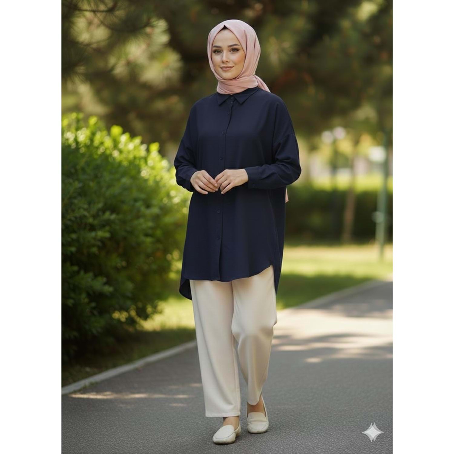 Uzun Kollu Düz Gömlek 25331 - Lacivert - L - AZRA07792-60918