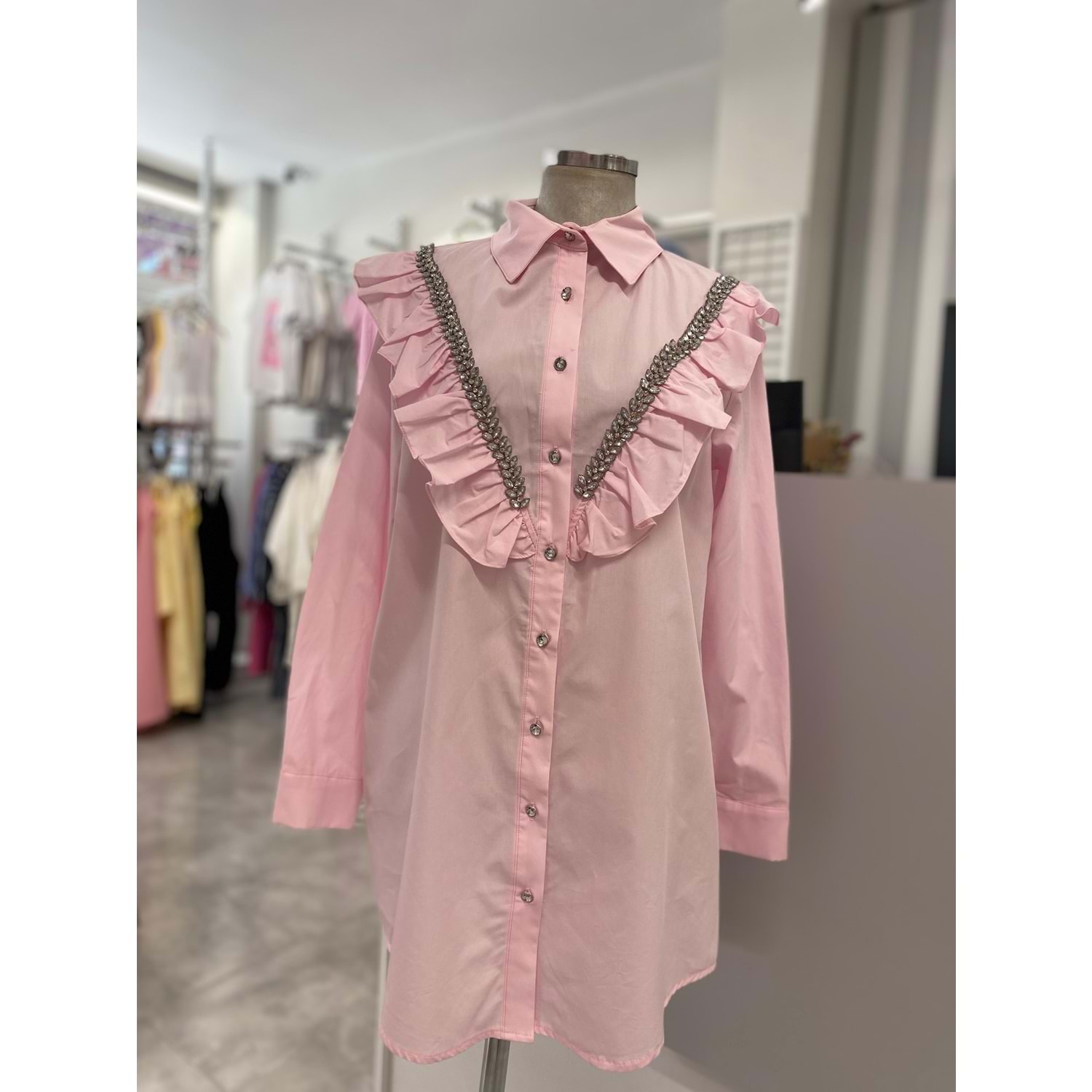V Desen Buğday Taşlı Gömlek 170190 - Pembe - 40 - AZRA05877-48549