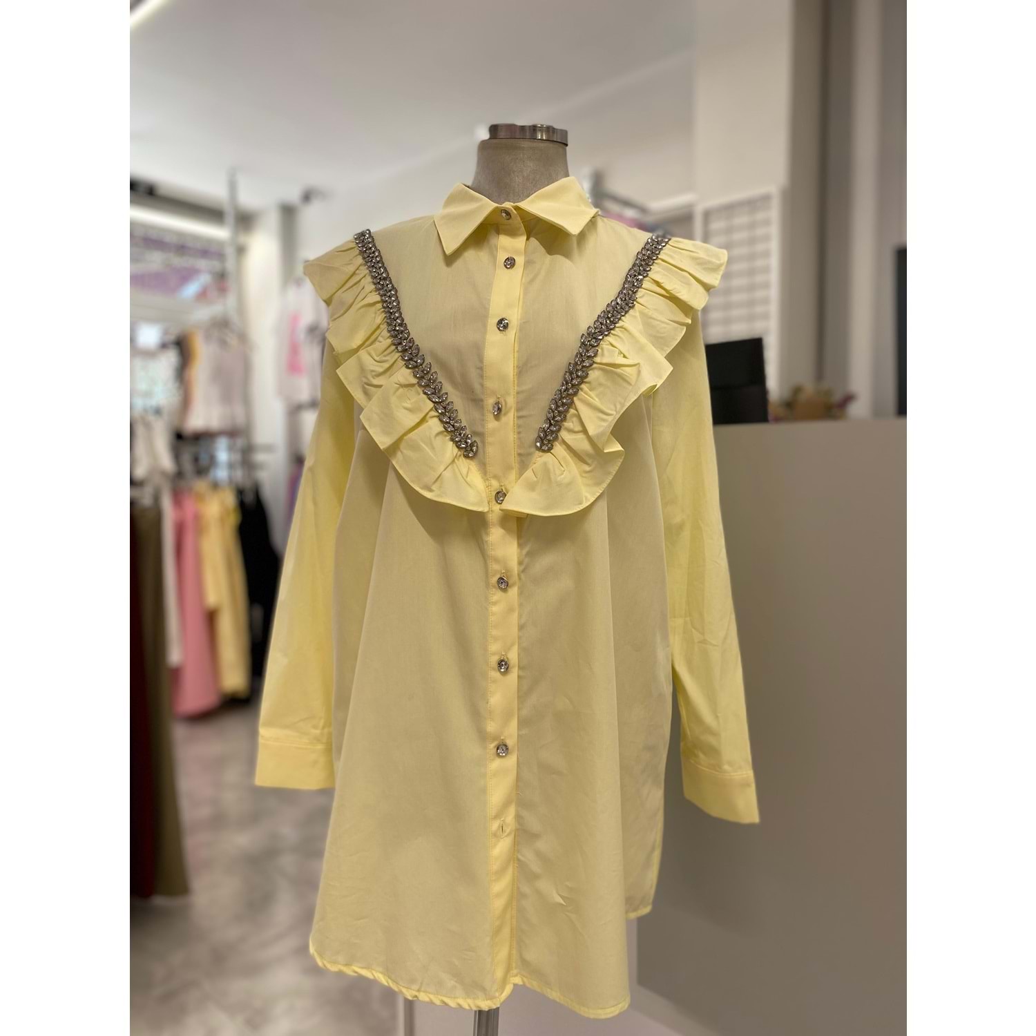 V Desen Buğday Taşlı Gömlek 170190 - Sarı - 40 - AZRA05877-48541