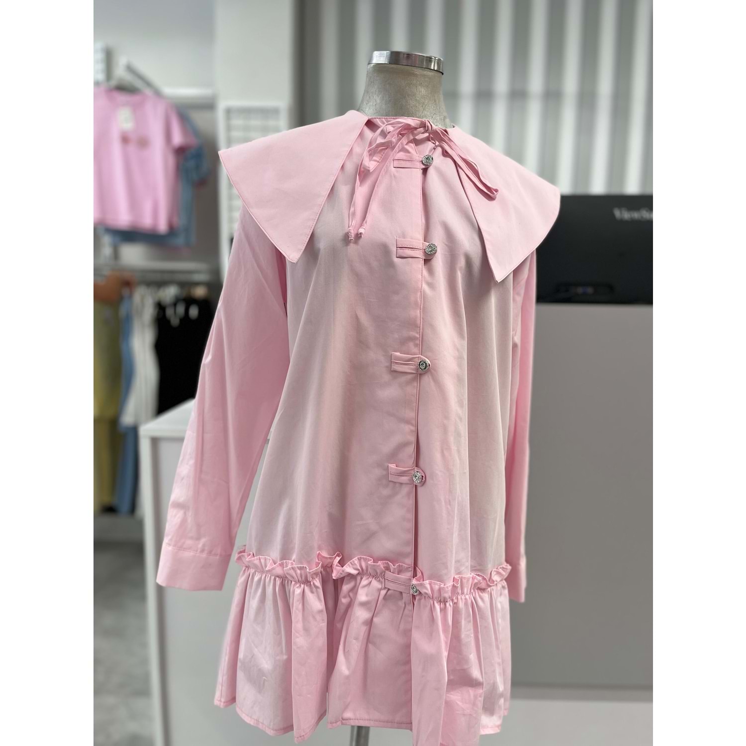 Yakası Fiyonklu Taşlı Düğmeli Gömlek 170192 - Pembe - 40 - AZRA05876-48528