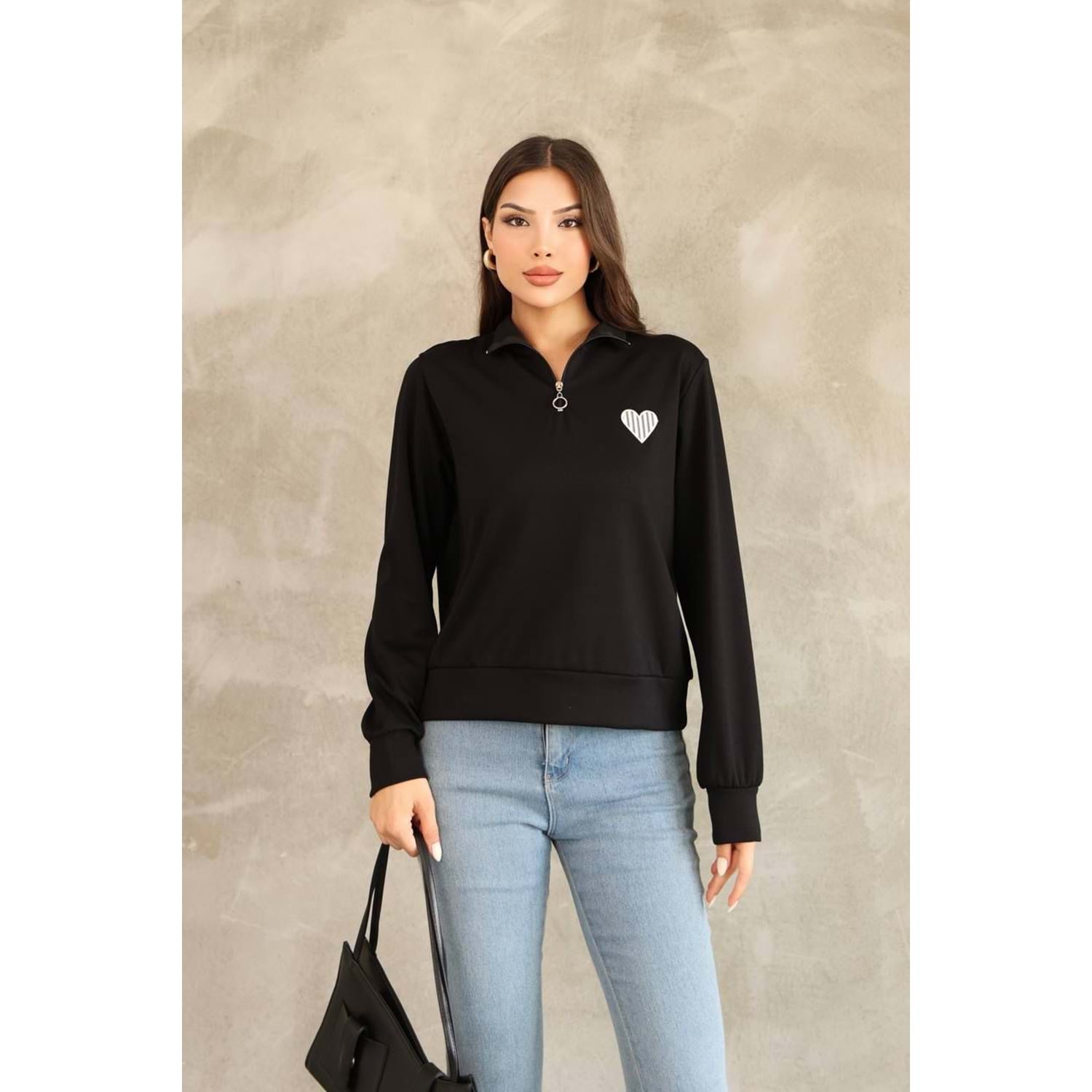 Kalp Nakış Detaylı Sweat 26147 - Siyah - S