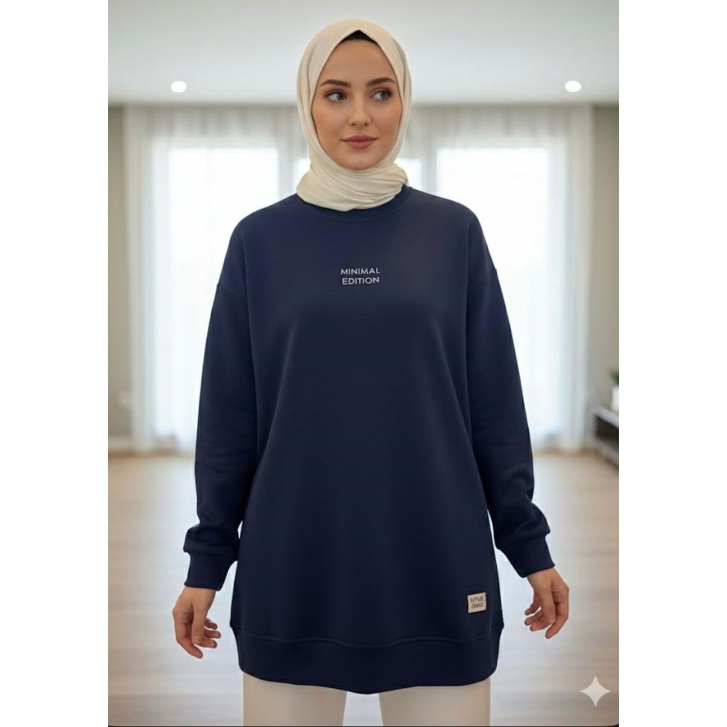 Kontrast Baskı Ve Etiketli S-Shırt 35325 - Lacivert - TEK BEDEN - AZRA07099-56897