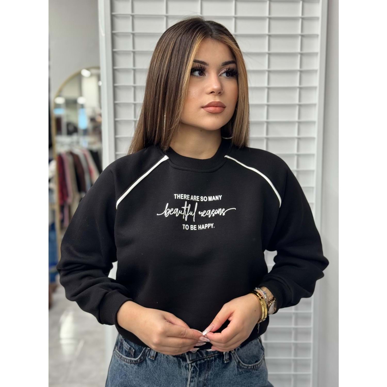 Ön Baskılı Ara Biyeli Sweat - Siyah - L-XL