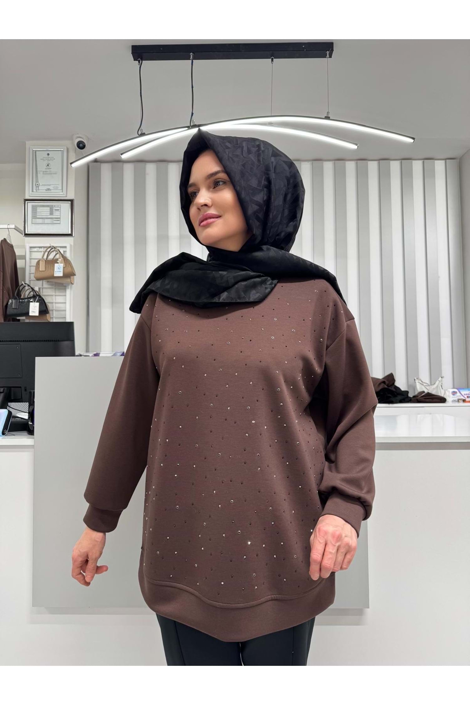 Serpme Taşlı S-Shırt 0036135 - Kahve Rengi - TEK BEDEN - AZRA07046-56590