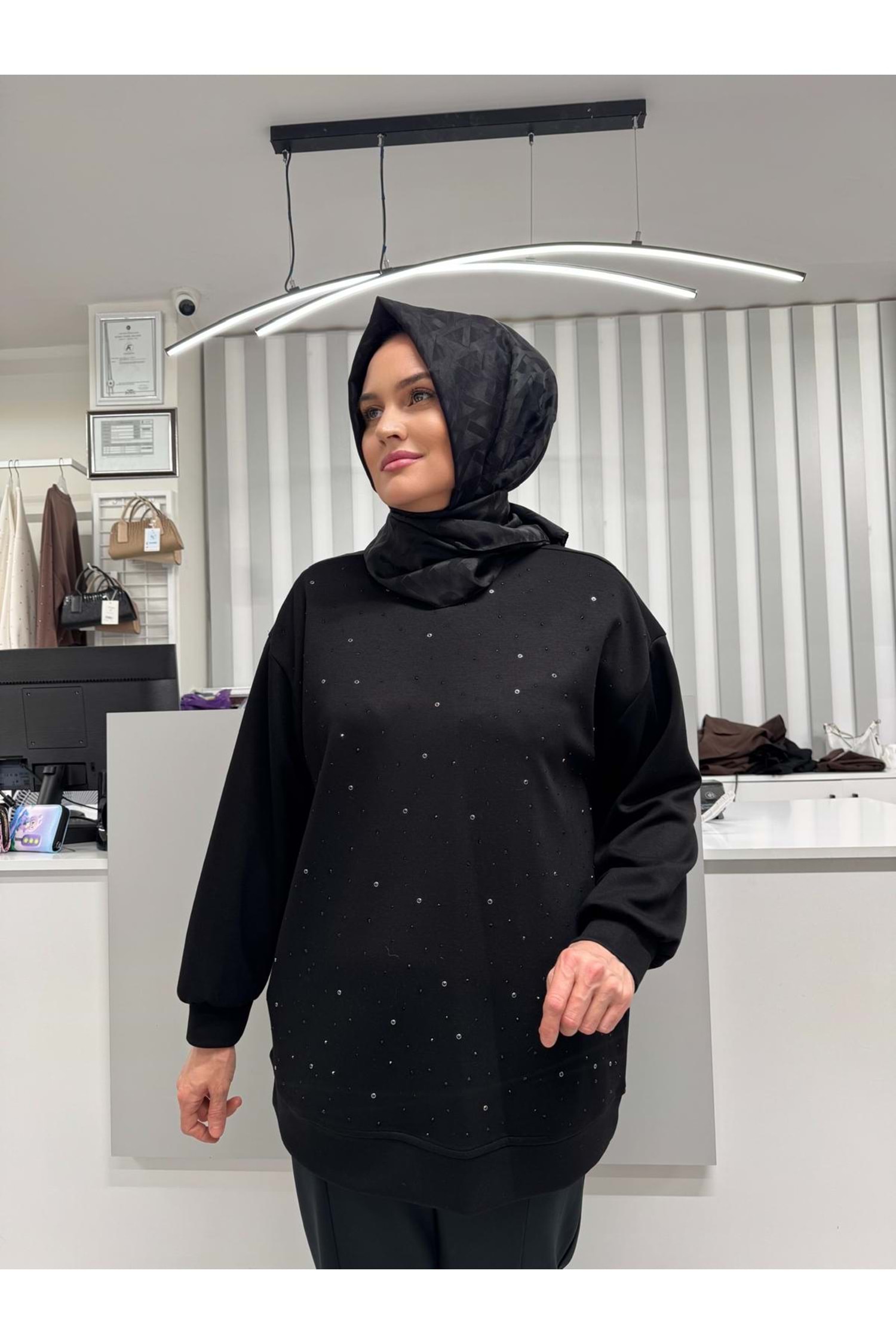 Serpme Taşlı S-Shırt 0036135 - Siyah - TEK BEDEN - AZRA07046-56591