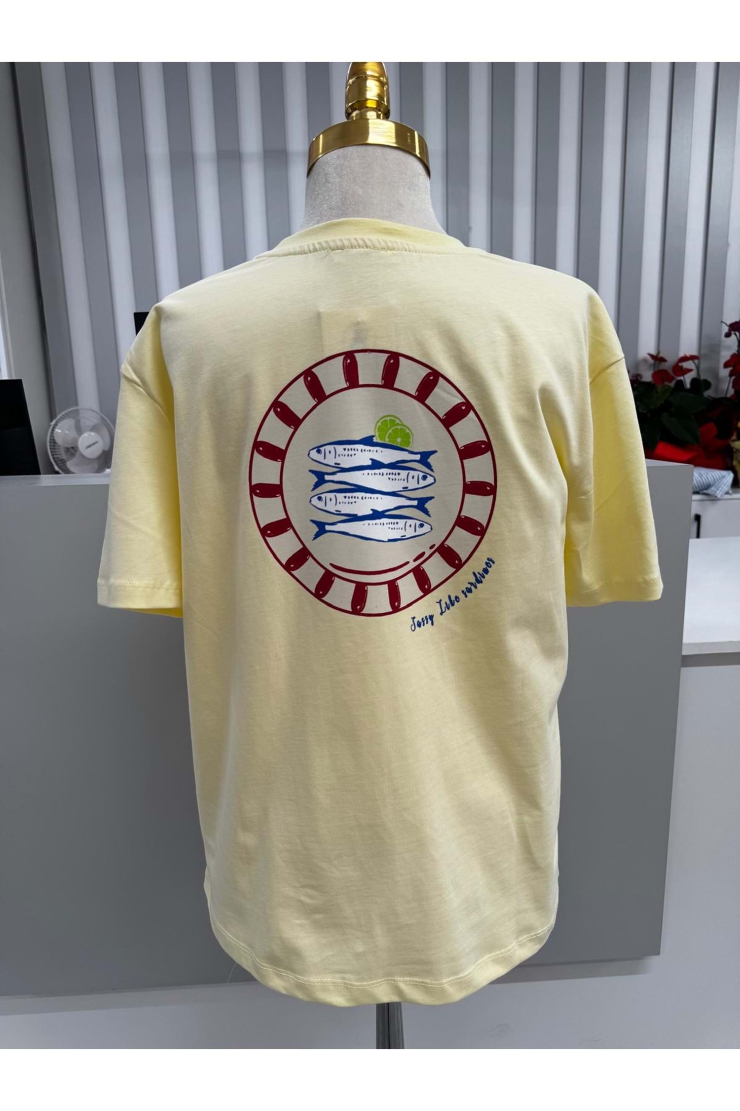 Balık Baskılı T-shirt 3668 - Sarı - S