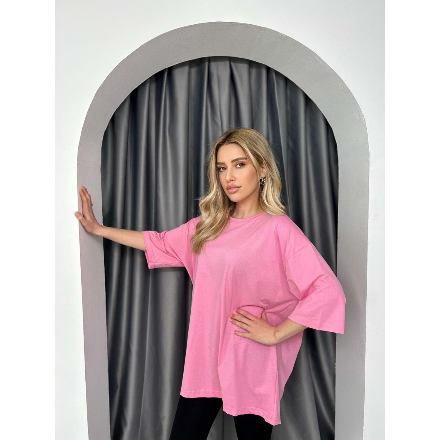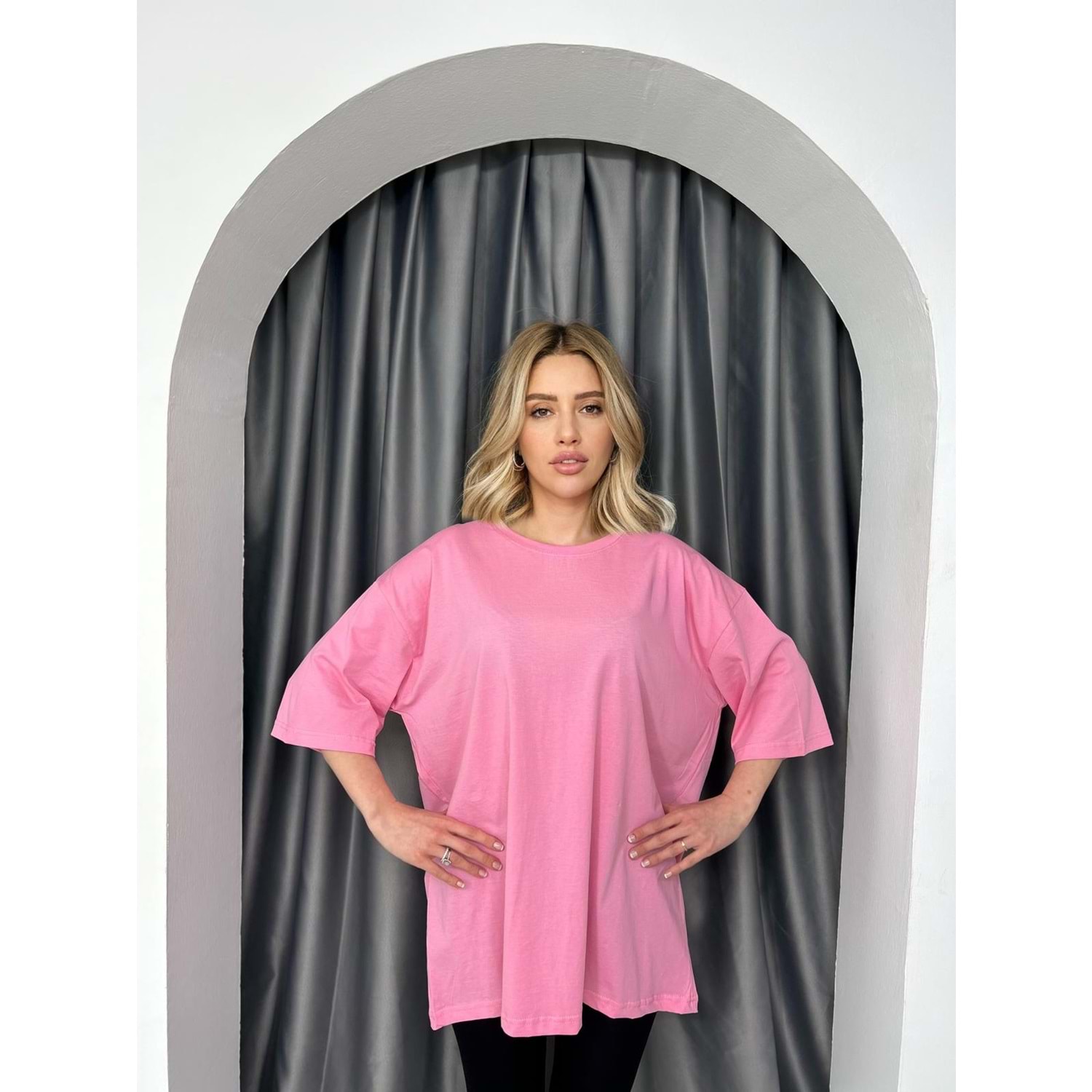T-Shırt Düz Salaş 3636 - Pembe - TEK BEDEN - AZRA02482-Pembe-TEK BEDEN