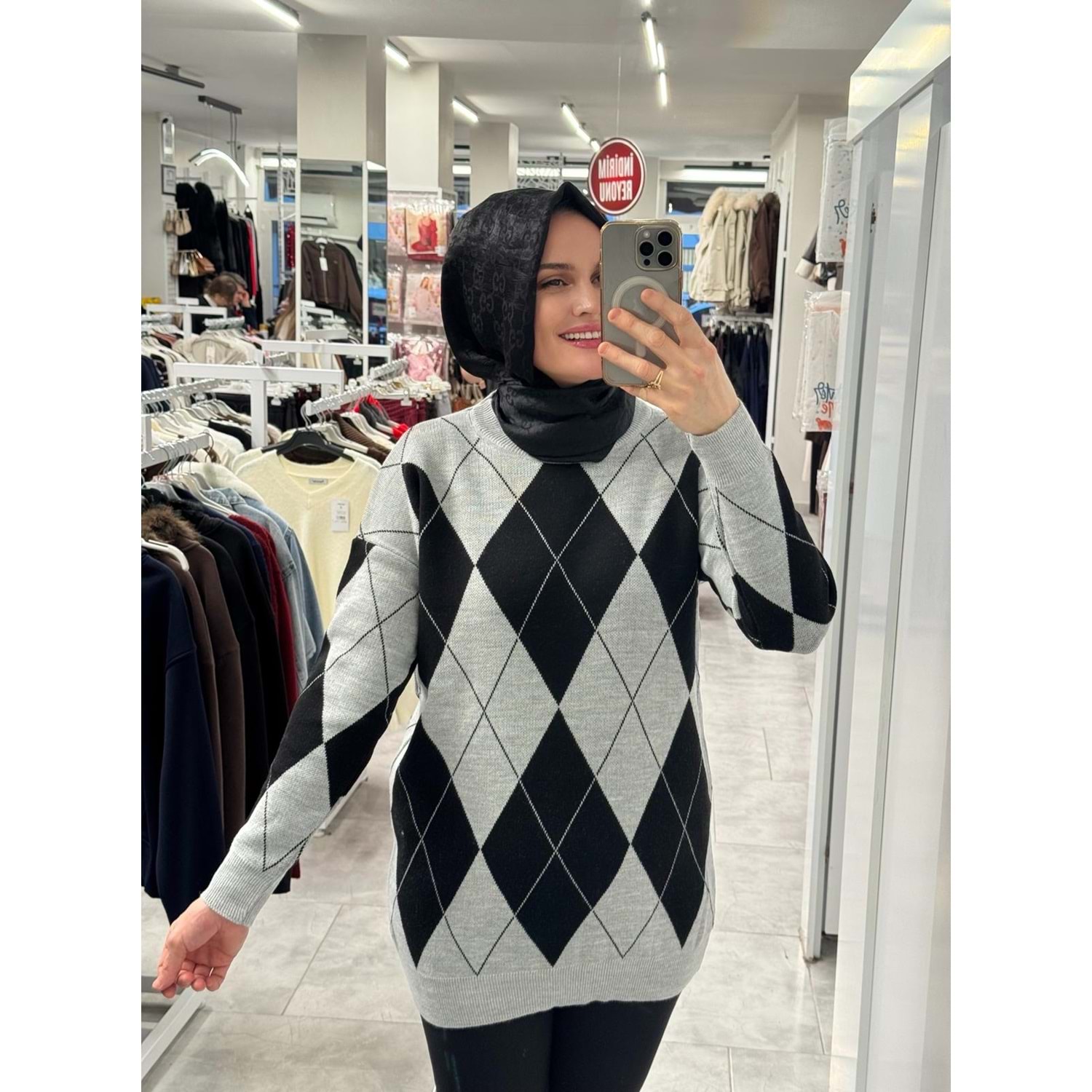 Baklava Desen Triko 3027 - Gri Siyah - TEK BEDEN