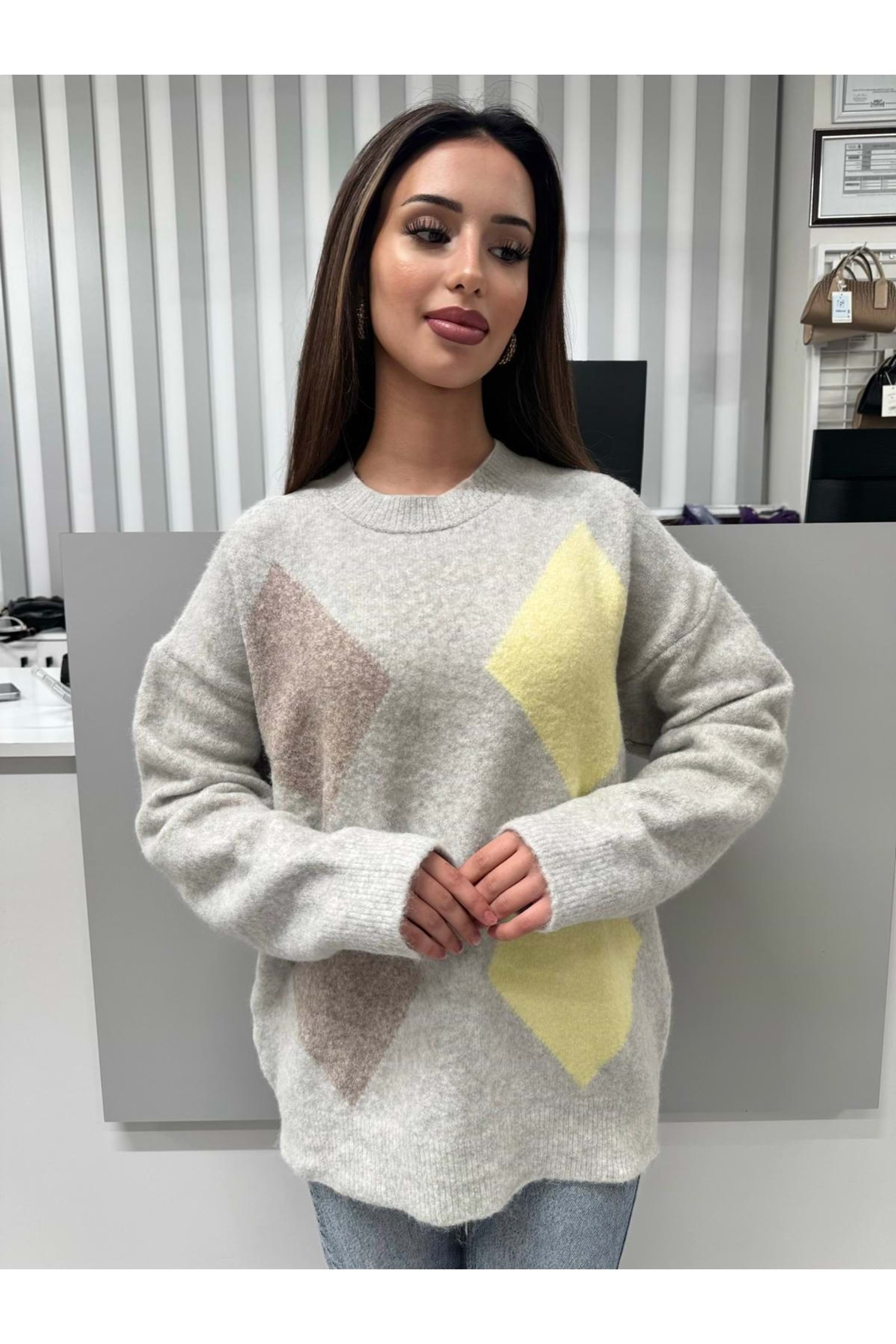 Baklava Desenli Luciana Triko 2468 - Gri - TEK BEDEN - AZRA07058-56658