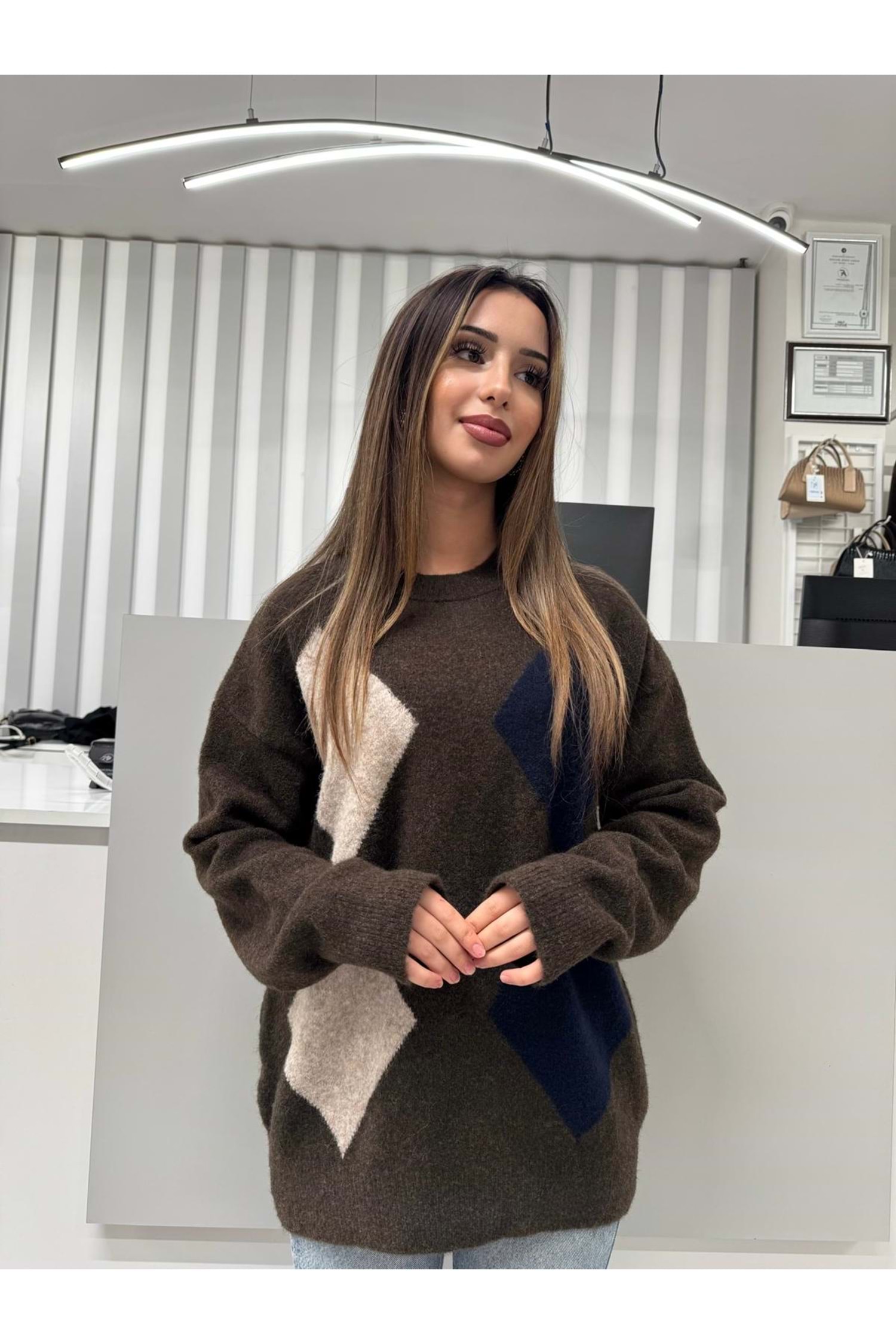 Baklava Desenli Luciana Triko 2468 - Kahve Rengi - TEK BEDEN - AZRA07058-56659