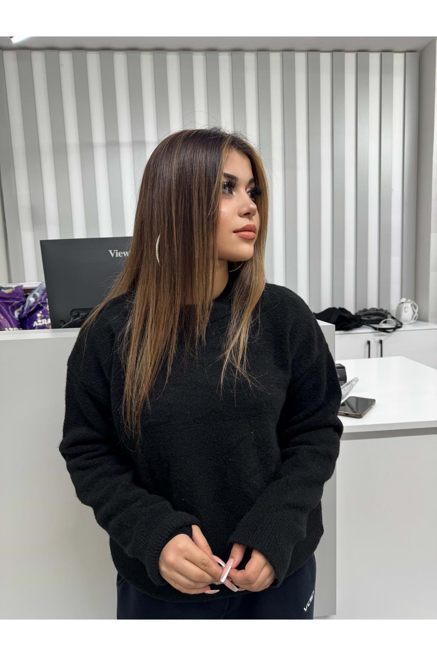 Bisiklet Yaka Setona Triko 2373 - Siyah - TEK BEDEN - AZRA07053-56644