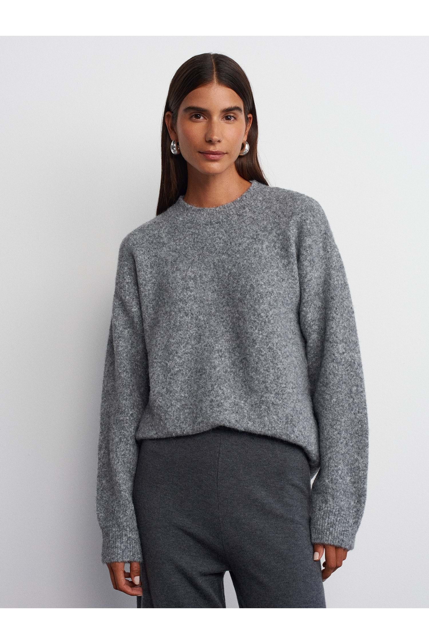 Bisiklet Yaka Yumuşak Dokulu Triko 10640 - Füme - TEK BEDEN - AZRA06907-Füme-TEK BEDEN