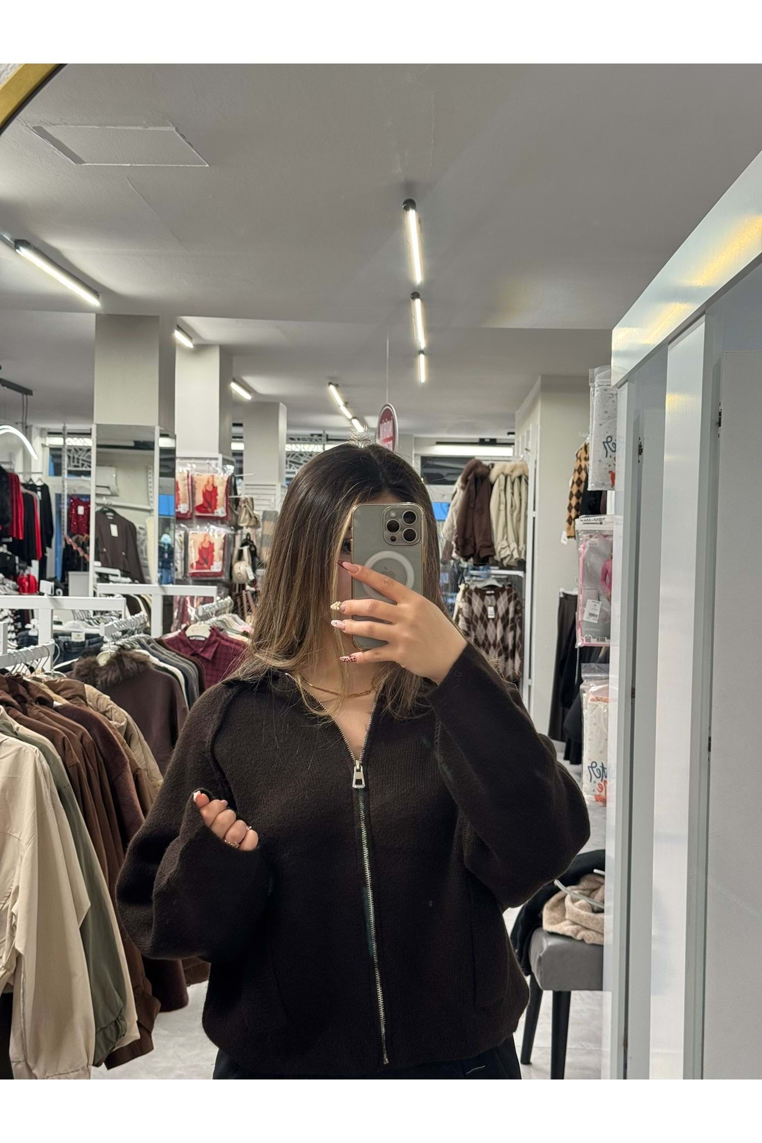 Fermuarlı Bogie Ceket 2381 - Acı Kahve - TEK BEDEN - AZRA07505-59282
