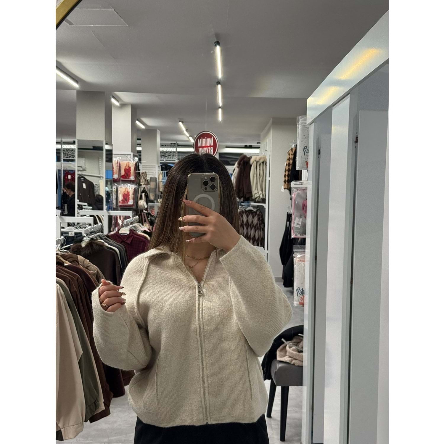 Fermuarlı Bogie Ceket 2381 - Bej - TEK BEDEN - AZRA07505-59283