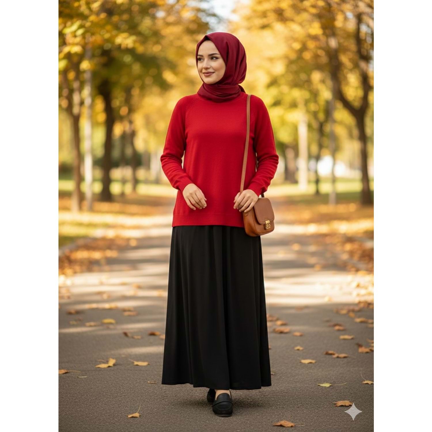 İtalyan Yaka Kazak 2189 - Kırmızı - TEK BEDEN - AZRA07501-59266