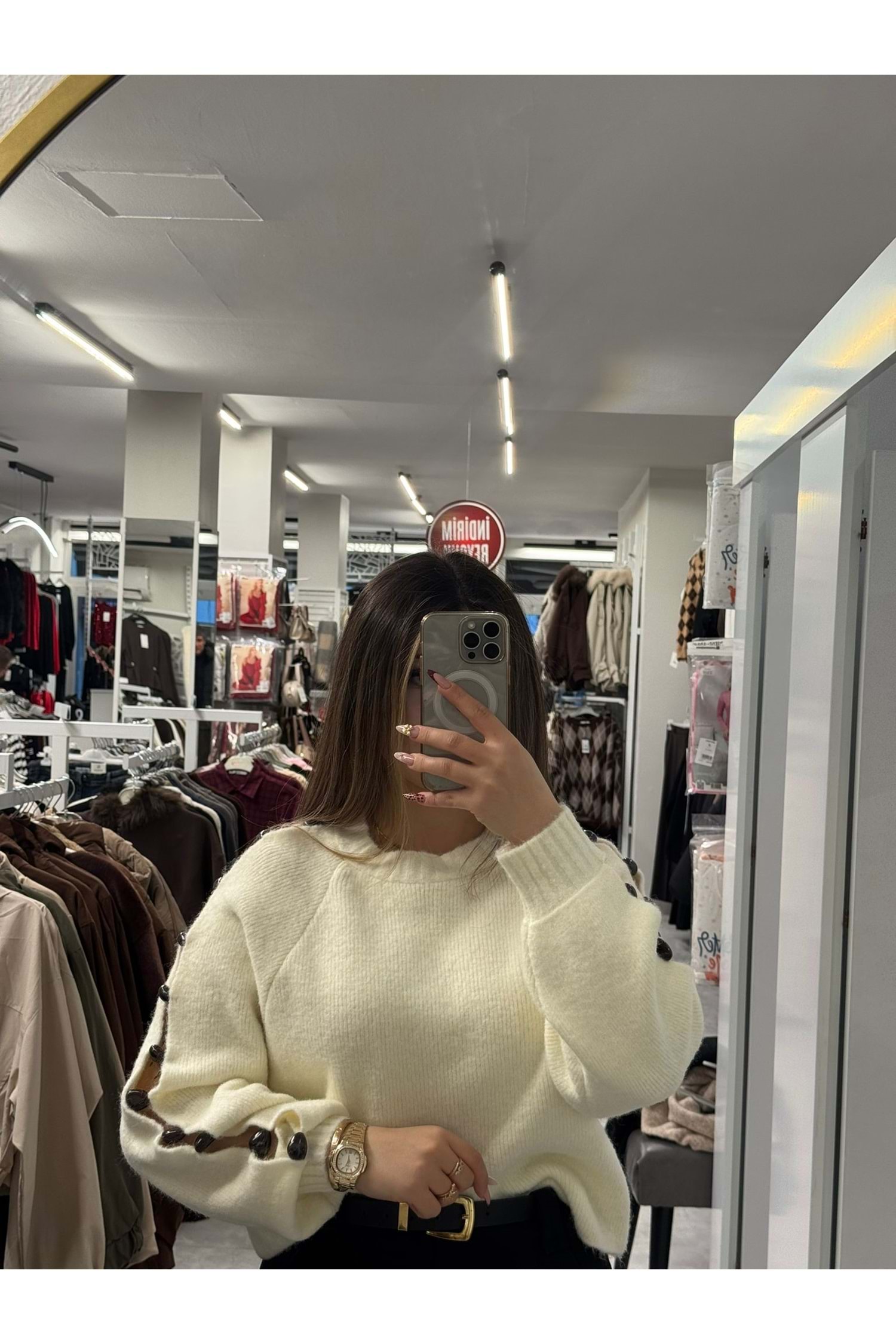 Kol Detaylı Triko Kazak 2574 - Bej - TEK BEDEN - AZRA07499-59256