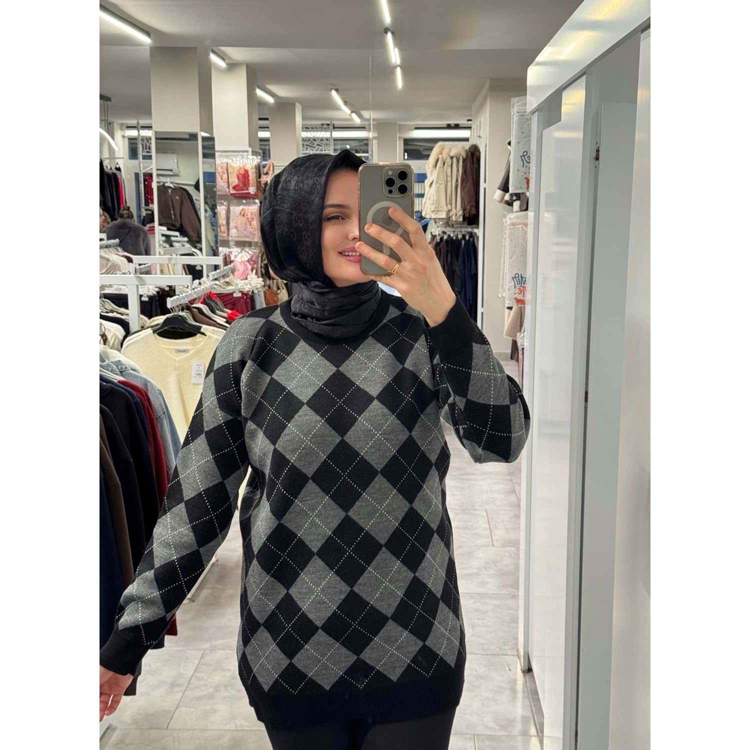 Küçük Baklava Desen Triko 3299 - Gri - TEK BEDEN