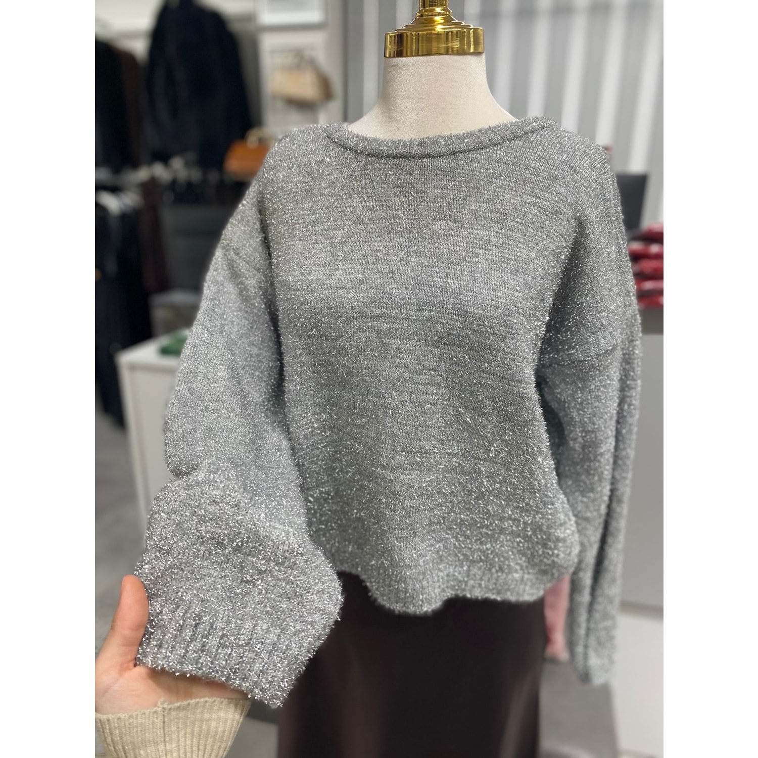 Simli Triko Kazak 293 - Gümüş - TEK BEDEN - AZRA07449-Gümüş-TEK BEDEN