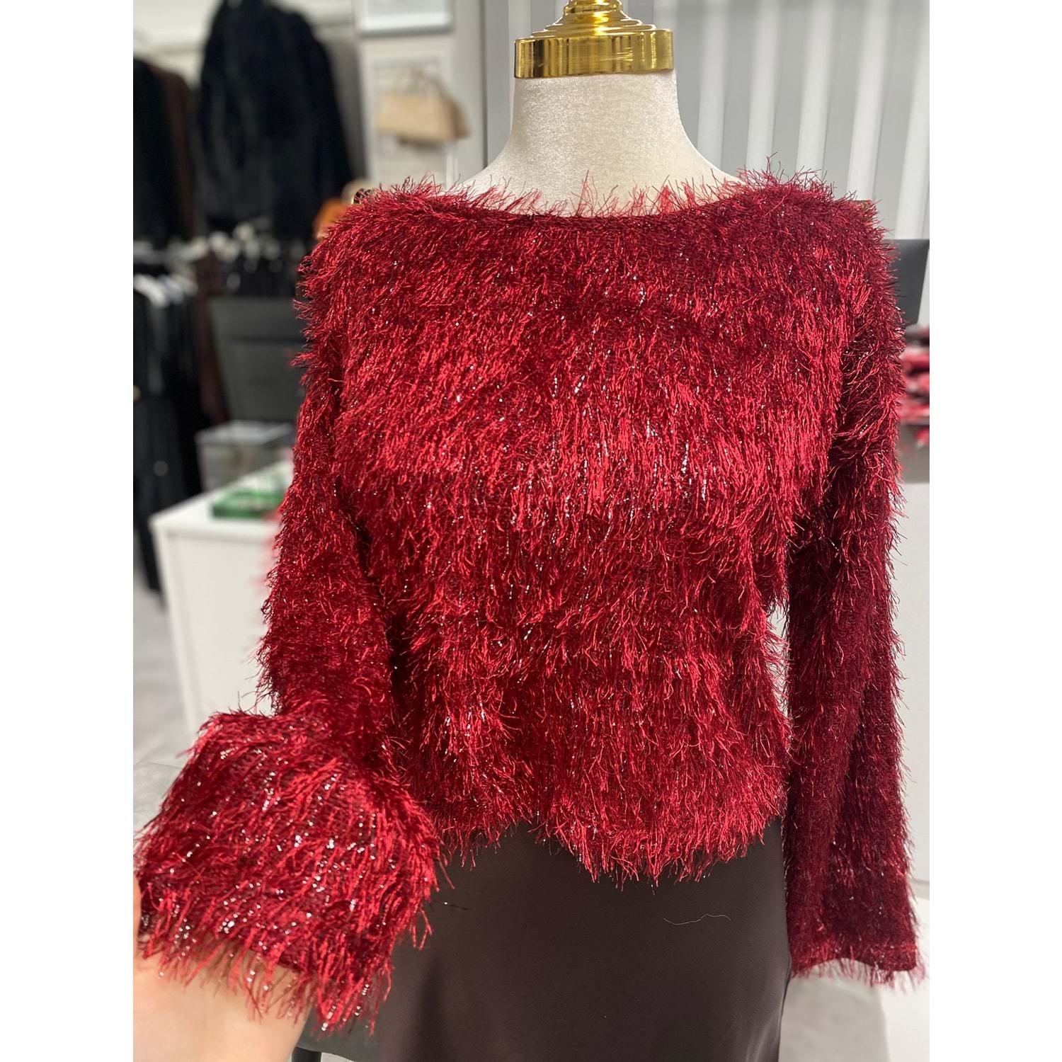 Simli Tüylü Kazak 9537 - Bordo - L - AZRA07428-Bordo-L