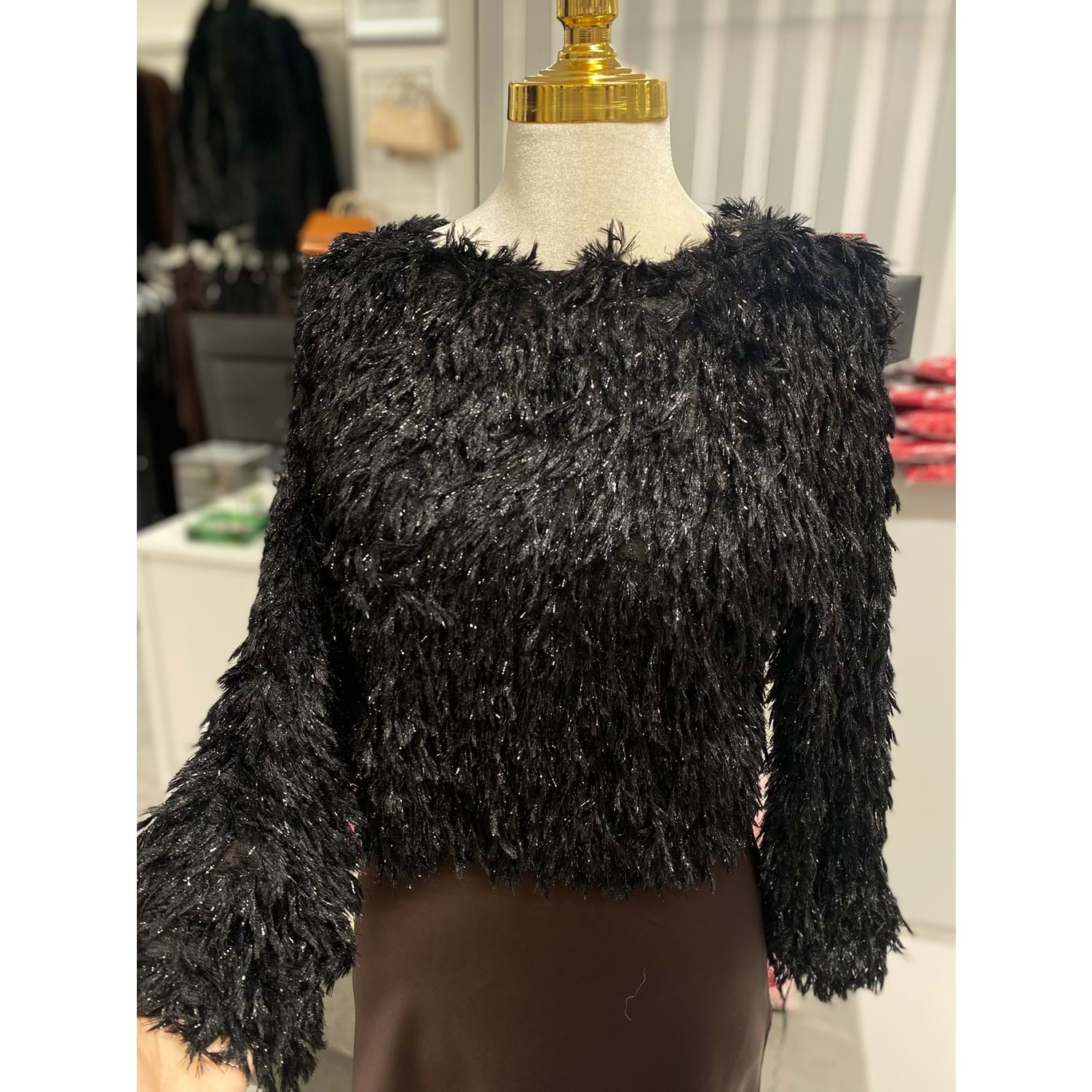 Simli Tüylü Kazak 9537 - Siyah - M - AZRA07428-Siyah-M